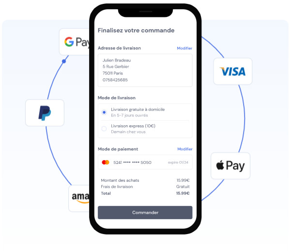 Boost your customer acquisition with a simplified checkout optimised for mobile.